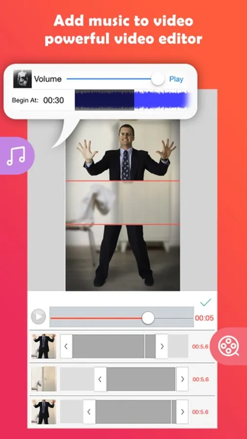 - Add background music to your masterpiece and adjust the volume of your video collage.