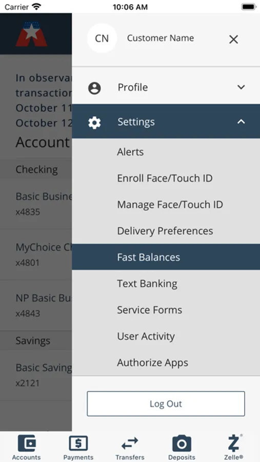 Customers can view account balances and transaction history, view account alerts, initiate account transfers and pay bills.
