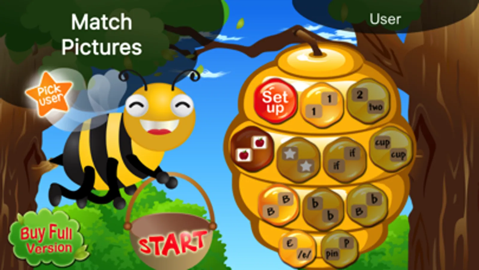 Bee Match Lite (Multi-User) is a great app for preschool, kindergarten and 1st grade children. This app provides 4 different matching games for kids to learn and memorize numbers, picture words, uppercase letters, and letter sounds. **This is just a lite version. In the full version, you can play all 11 different matching games (such as lowercase or uppercase letters, letter sounds, numbers, number words, picture words, shapes, sight words, sound out words and beginning sound of the words. It is a fun game for kids to practice and improve their recognition skills.