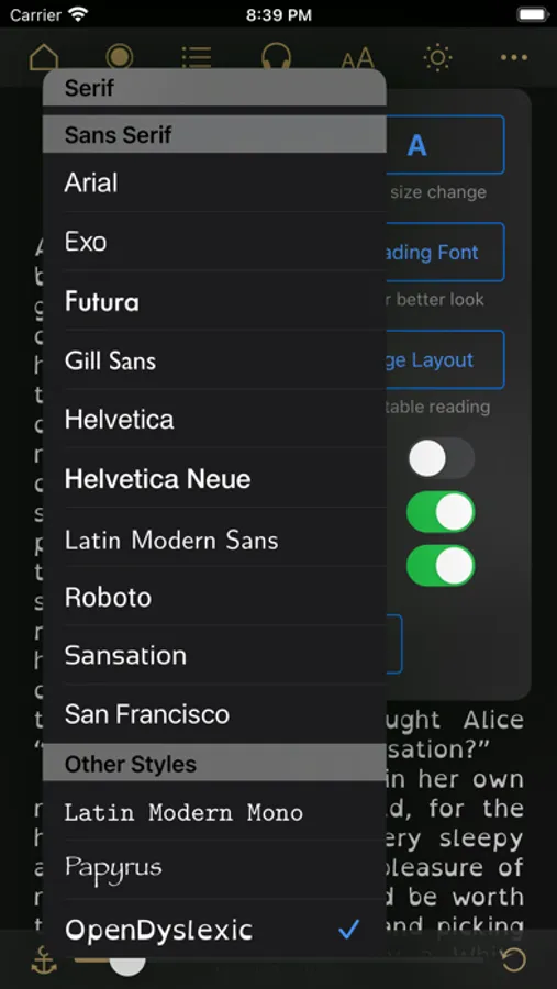 - A choice of UI text sizes makes reading in non-book views much more comfortable.
