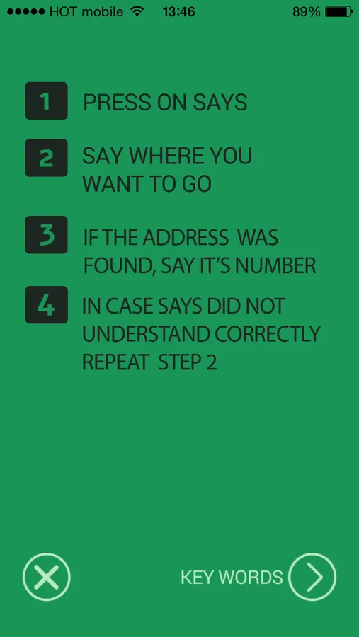 Says is the app that listens to where you wanna go and begins navigating to your destination. No tricks, nothing complicated.