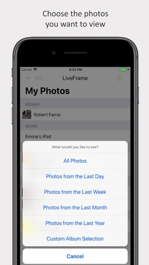 - Photos from the last Day, Week, or Month (great for keeping current with family and friends!).