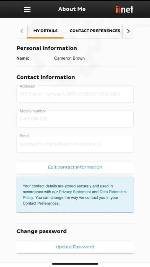 · View and update your contact details.