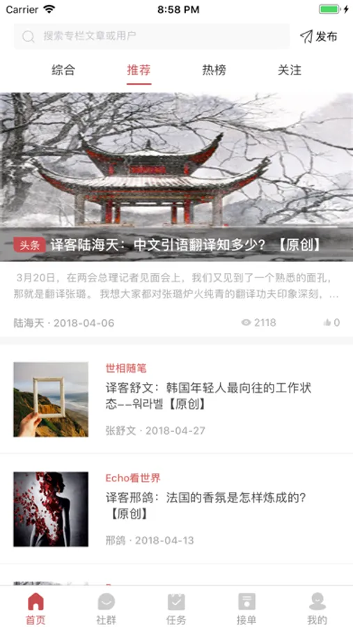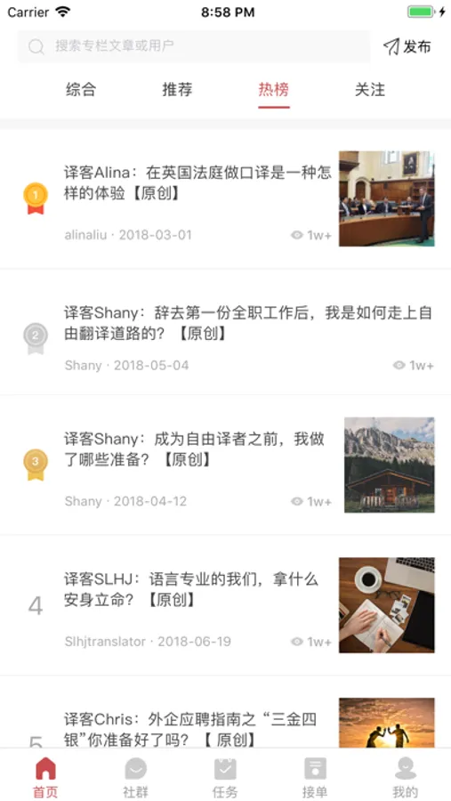 云译客APP以译员全生命周期为阶段提供专业的社群服务,通过社群、任务、接单三个核心功能,帮助译员在云译客app上扩大社交圈、打造个人品牌影响力成为KOL、增加收入、学习成长,百万译员都在用,快来加入我们吧!