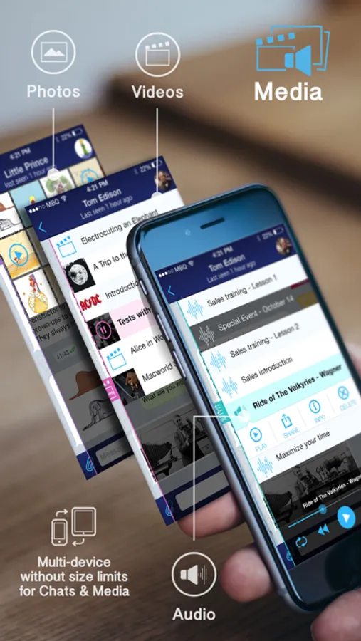 Share anything instantly, notes, to-dos, tasks, goals, documents, video and audio messages, open compressed documents (.ZIP, .RAR,...), even you can check email coming from your chat group members without quiting the app !