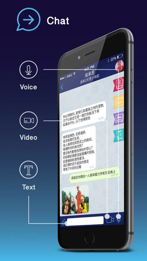 GROUP CHAT & SHARING: You can form large group chats and broadcast lists of up to 10000 members, quickly share large videos, documents (.doc, .ppt, .zip, etc.), and send an unlimited amount of photos to your friends.