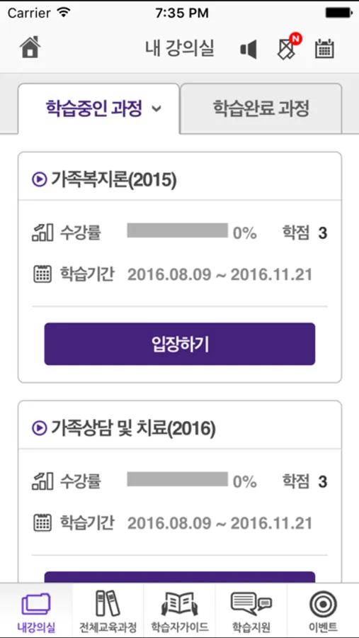 -강의수강컴퓨터가 없는 곳에서도, 이동하시면서도모바일에서도 편리하게 강의를 수강해보세요.출석체크, 진도율을 모두 확인하실 수 있습니다.