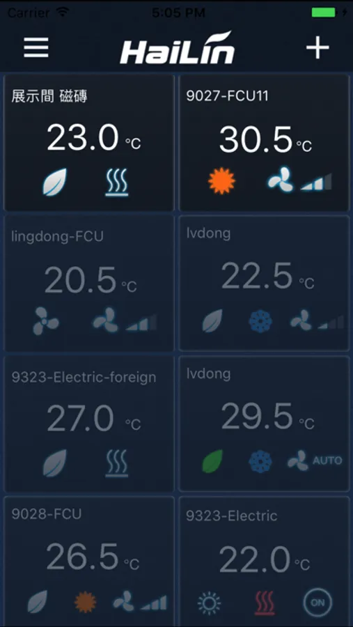 The mobile interface of Hailin IoT cloud service, which connected all the devices of Hailin temperature controllers, and sensors. Customers can access the devices easily by install this app.