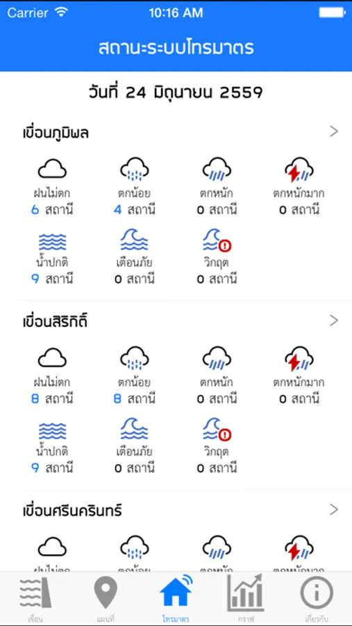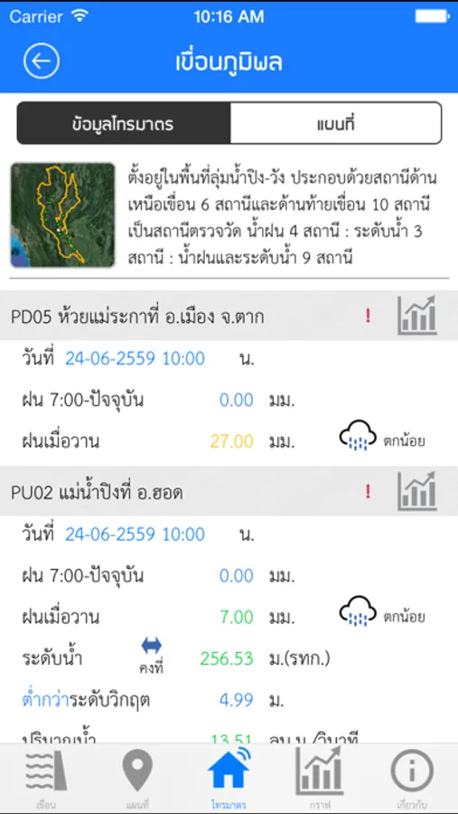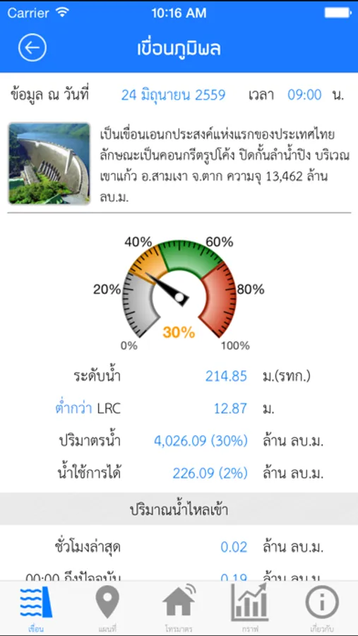 EGAT Water เป็นแอพพลิเคชั่นที่จัดทำขึ้นโดย การไฟฟ้าฝ่ายผลิตแห่งประเทศไทย (กฟผ.) เพื่อรายงานสถานการณ์น้ำในเขื่อนที่อยู่ภายใต้การดูแลของ กฟผ. รวมถึงข้อมูลปริมาณน้ำฝนและสภาพน้ำท่าในพื้นที่ลุ่มน้ำที่เขื่อนตั้งอยู่ ทั้งด้านเหนือเขื่อนและด้านท้ายเขื่อนจากระบบโทรมาตร ที่รายงานผลการตรวจวัดจากสถานีสนามแบบอัตโนมัติ เพื่อให้ผู้ใช้สามารถติดตามสถานการณ์น้ำฝน ระดับน้ำ ปริมาณน้ำที่ไหลลงอ่างเก็บน้ำและสภาพน้ำในลุ่มน้ำตามจุดสำคัญๆได้อย่างต่อเนื่องและรวดเร็ว