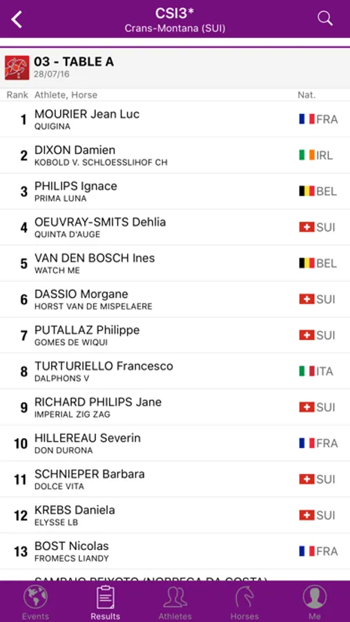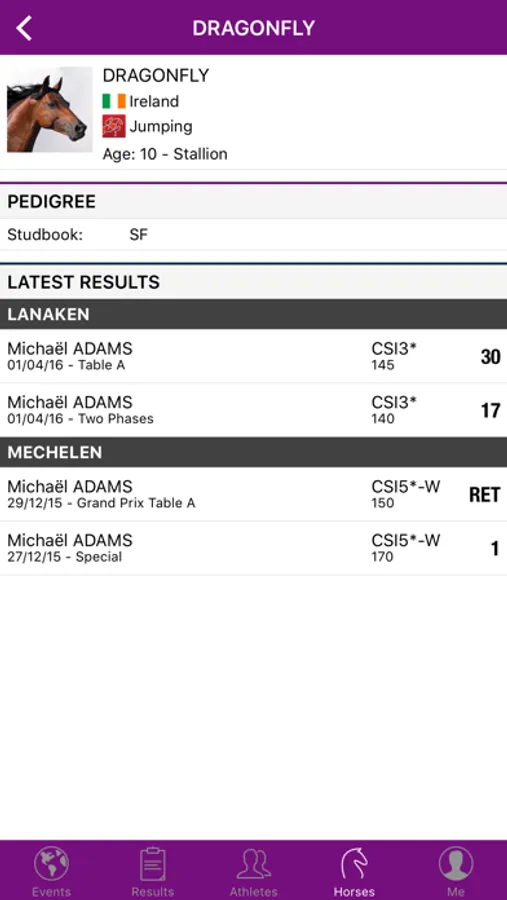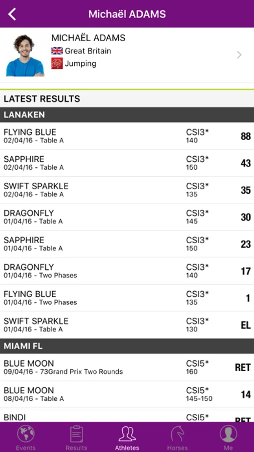 - Get a deeper look into your favourite athletes and horses with access to their results and biographies. Get to know where your favourite athletes started their international horse sport career, their hobbies, website, Facebook page, see their picture, and more!