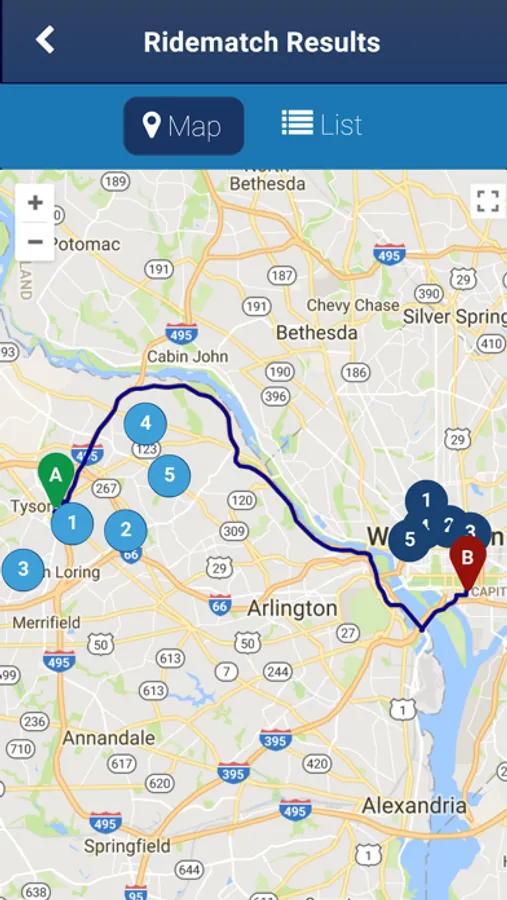 The Commuter Connections mobile app provides commuters in the Washington DC metropolitan region access to ridesharing matches with other commuters living and working in the same area and park and ride lot locations close to home.