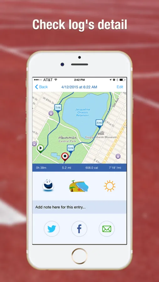 This app uses GPS to locate and give the current speed, used time, distance and route in map, also calculates calorie burned when running according to your weight, speed and time used. You can save the log directly after running or add manually later.