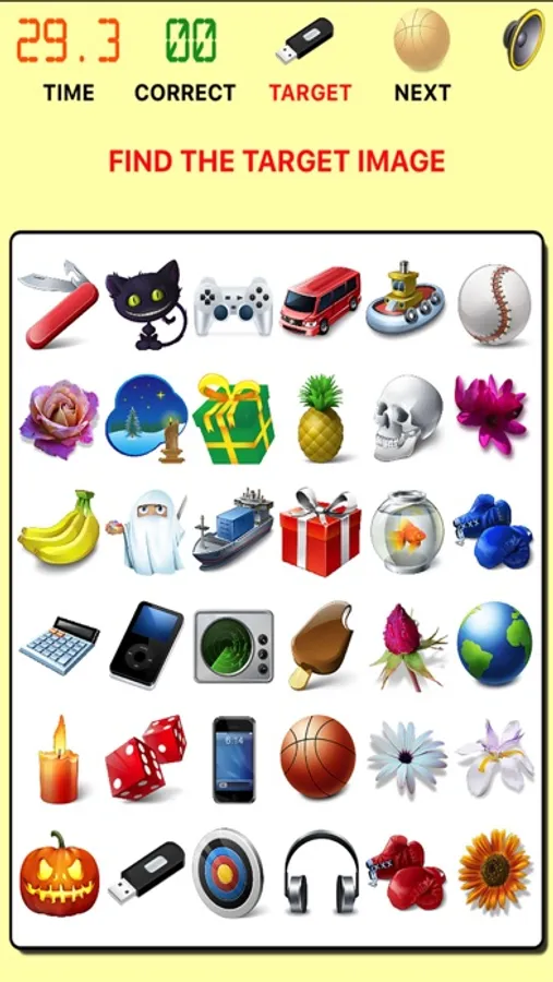 The main objective is to find the indicated images in the available time. You have to be fast and accurate to do that and get the medal. Are you able to do that?