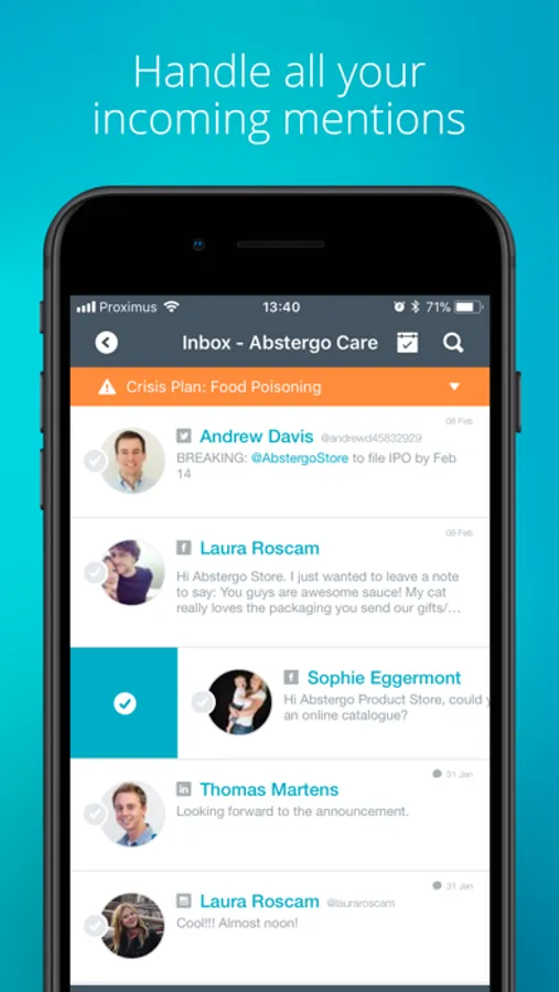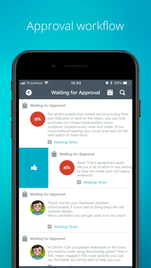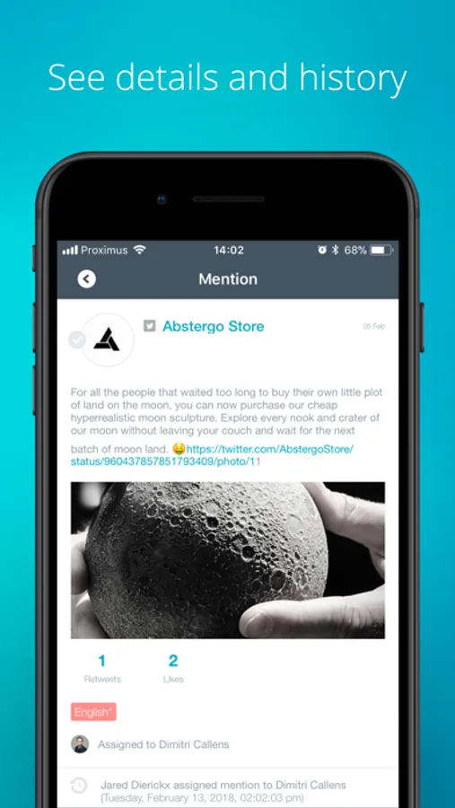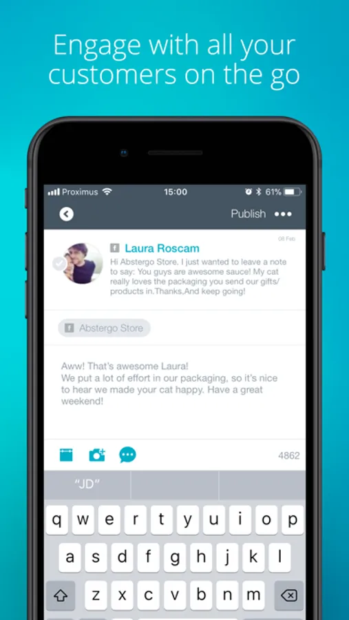 Engage with your customers from all your social accounts: reply, assign tasks to team members, publish, see more details and history all from one app.