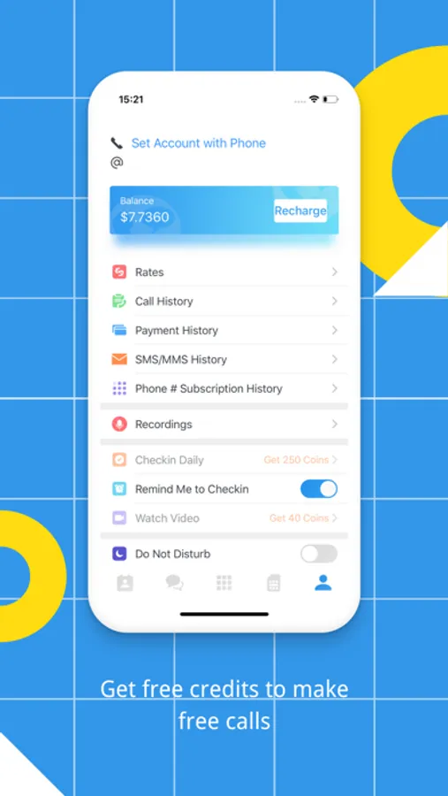 • Check-In Daily to Earn Free Phone Call Credits