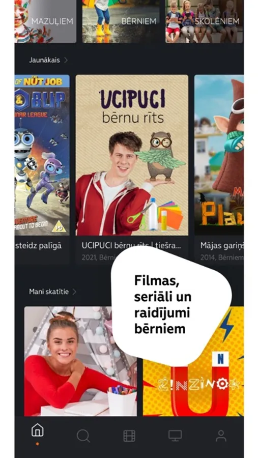 - Saturs bērniem – animācijas filmas, koncerti un seriāli.