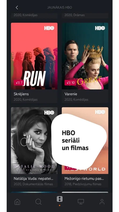 - Kinoindustrijas milža HBO seriāli un filmas ar iknedēļas pirmizrādēm.