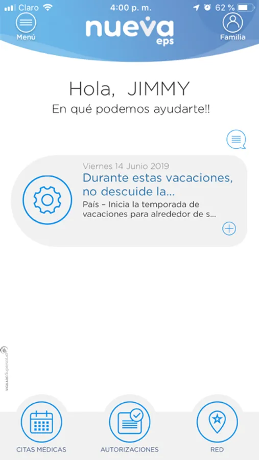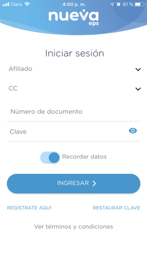 Aplicación móvil de NUEVA EPS donde los afiliados podrán consultar el estado de afiliación, la red nacional de prestadores, oficinas de atención y farmacias.