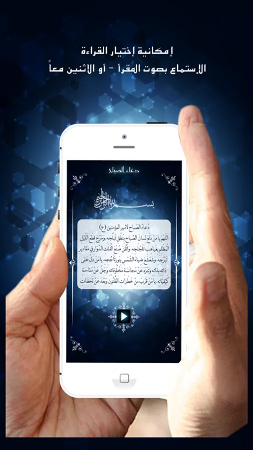 إن جميع الأدعية بالصوت والصورة وبخط مميز, إذ يمكنكم القراءة أو الاستماع أو الاثنين معاً, كما يمكنكم الإستماع والهاتف مغلق.
