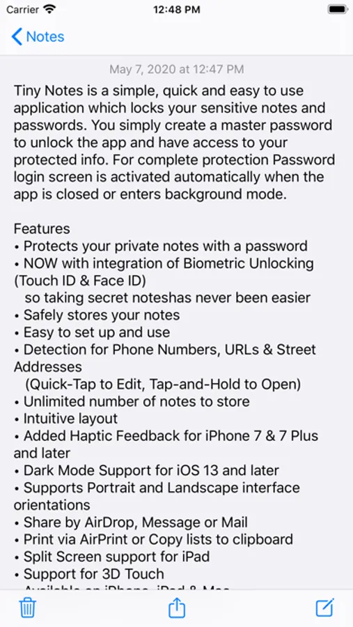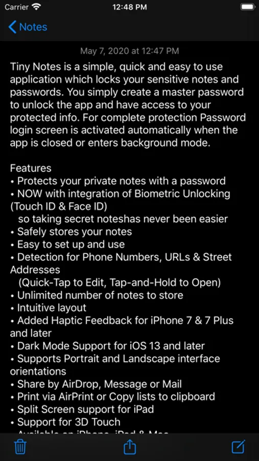 • NOW with integration of Biometric Unlocking (Touch ID & Face ID) so taking secret notes has never been easier