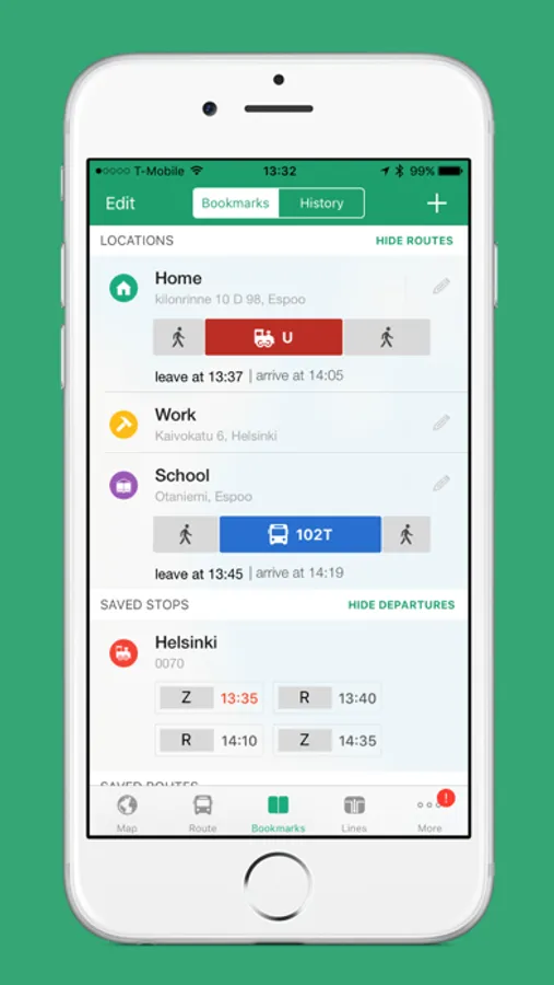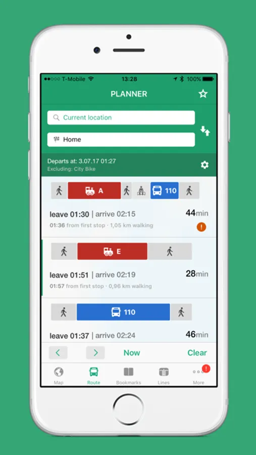 ● Set a reminder for a departure from a stop or time to leave for a route.
