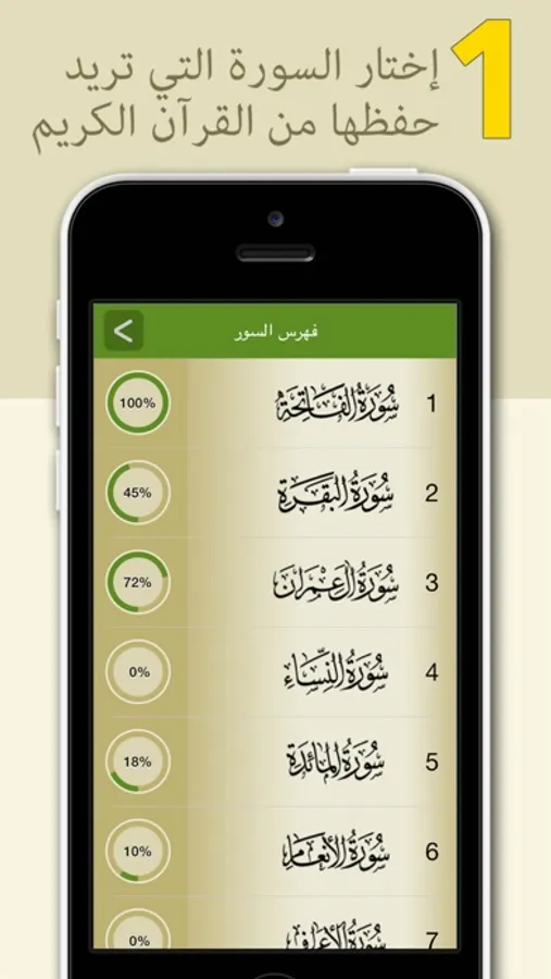 * نسب مئوية لجميع السور لمتابعة حفظك و تقدمك