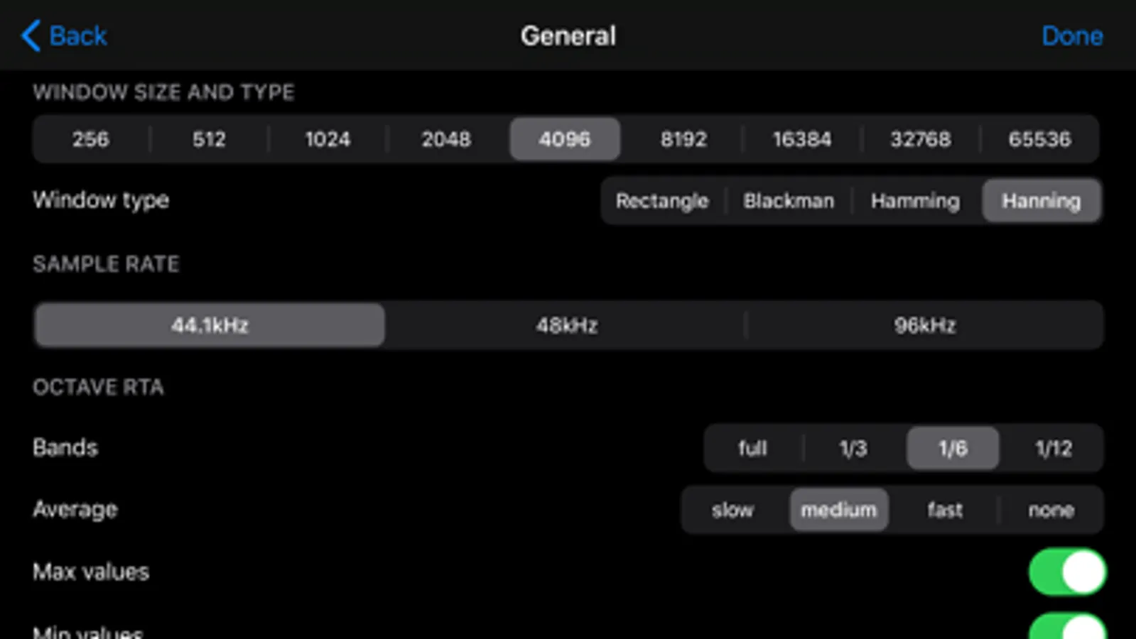 *For 96kHz analysis use an external microphone with such capabilities through a USB camera adapter or through the iPhone/iPad dock connector.
