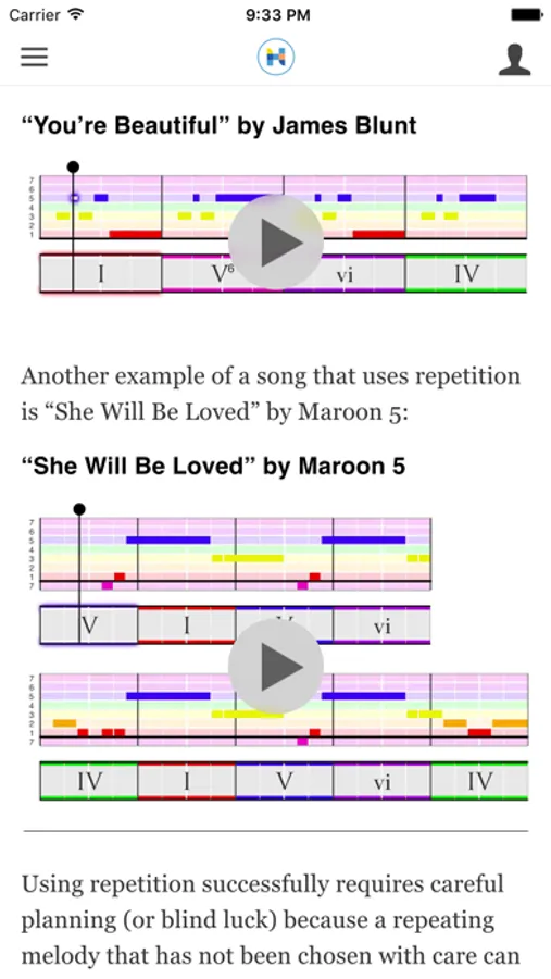 Hooktheory teaches with an easy-to-understand music format that emphasizes chord and melody function. Rich audiovisual animations play along as you learn. We dissect popular songs and show you how the pros do it. Immediately practice concepts and tactics with our companion musical sketchpad, Hookpad. There is nothing else like it!