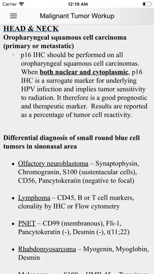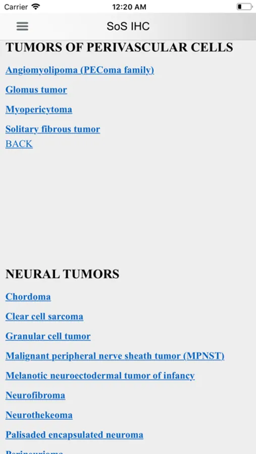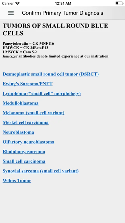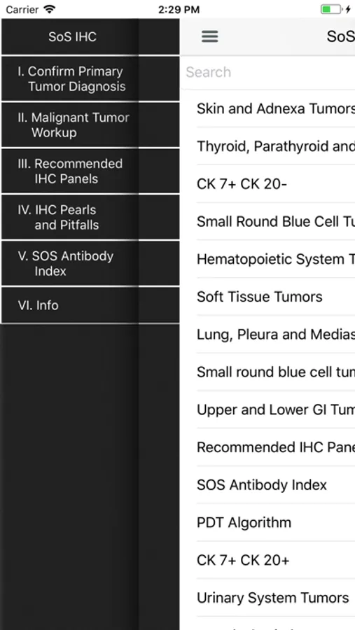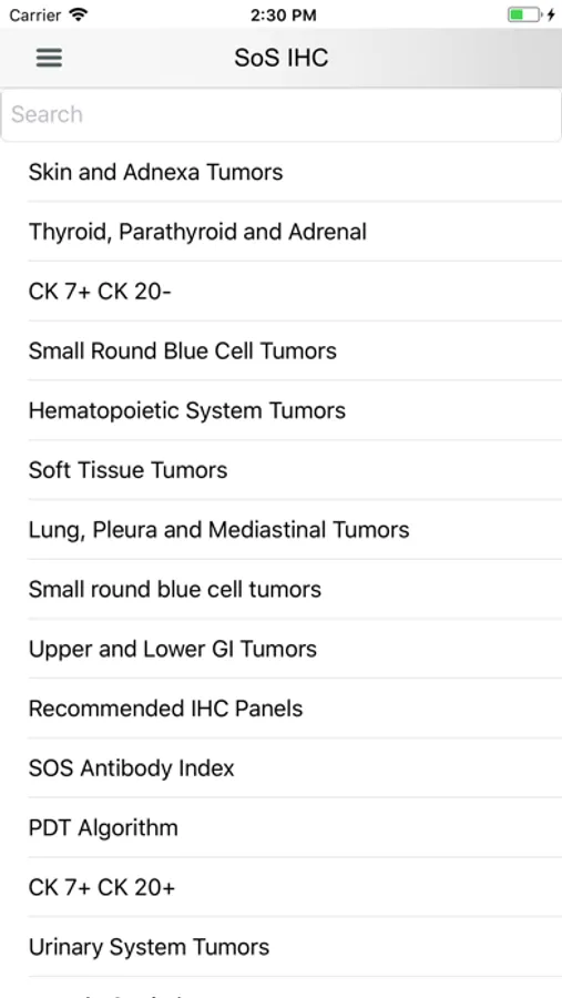 This app is designed to provide a handy reference in diagnostic immunohistochemistry during daily sign-out for both practicing pathologists and trainees. IHC stains are used routinely in daily practice, but the extensive IHC literature in textbooks and online resources can be hard to access and navigate. This easy to use app allows for selection of appropriate IHC stain panels in an algorithmic work-up of tumors. This release provides the most up-to-date information on individual tumor IHC profiles and antibodies. Clinically relevant molecular pathology information is also included for some tumors.
