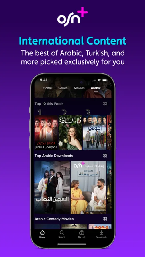 With unlimited access to hundreds of hours of entertainment, there's something for everyone's taste. Keep up with the latest episodes of the most popular shows, released on OSN+ at the same time as the USA or check out various content trays of movies and series, curated to give you the ultimate viewing experience.
