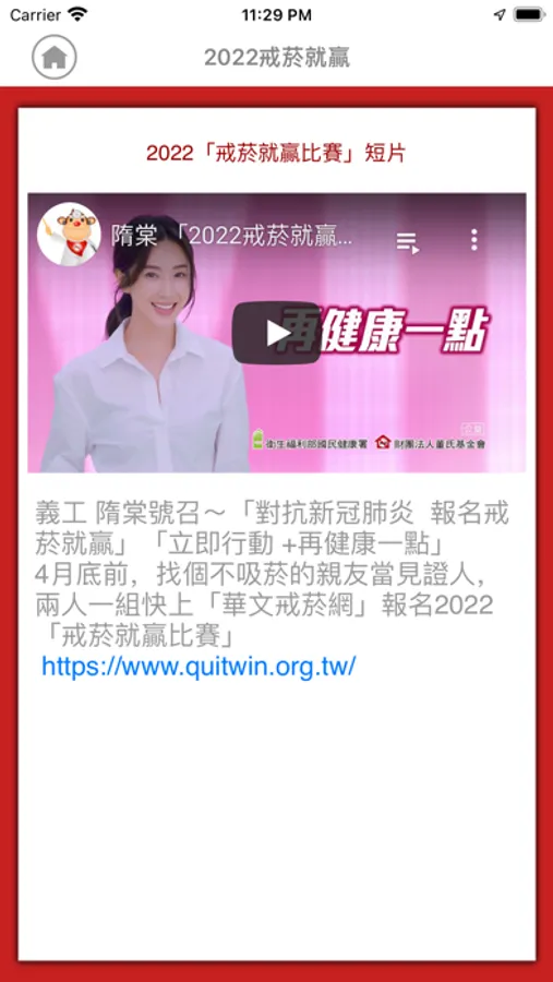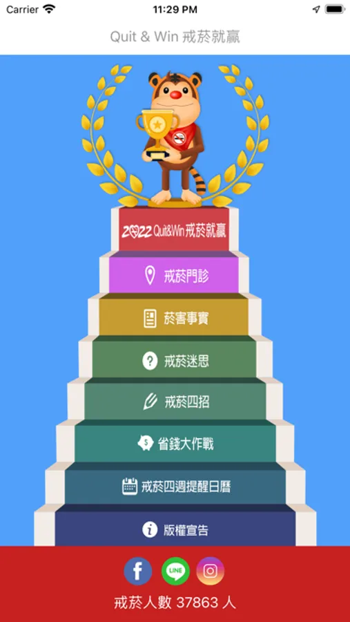 透過APP讓戒菸變得更容易!以真實的數據、戒菸月曆一路陪伴您,APP並可連結各種戒菸資訊;讓戒菸輕鬆又愉快。