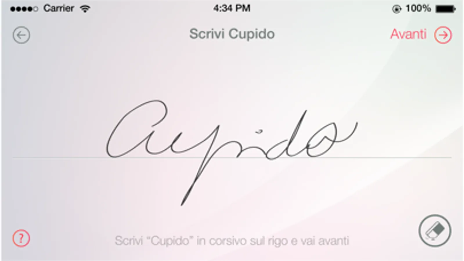 Cupido è la prima applicazione che misura il grado di compatibilità con il tuo partner analizzando la scrittura. Questa app, attraverso l'interpretazione di alcuni parametri grafologici, rileva i principali tratti caratteriali e le dinamiche che contraddistinguono il vostro rapporto di coppia.