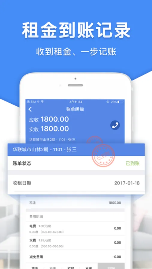 房东利器1.0版,于2014年5月份上线,经过我们与广大用户多年来的共同努力,已然成为房东们不可或缺的管理利器。“简单、实用、易上手”是用户对房东利器最中肯的评价,“一个人一部手机管理一栋楼”是房东利器的产品定位,功能涵盖房源登记、租客入住、收租、续租、退租、换房、换表、租金递增等租房管理的各个环节。租约信息可以一键导入电子合同,手机直接签署,告别纸质合同,方便又环保。免费对接各大品牌智能水电表,实现一键远程抄表,大幅提高抄表效率。