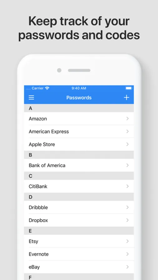 - Keep track of all your passwords and codes