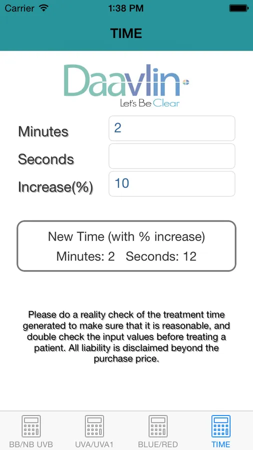 1. Calculating treatment times for UVB (milijoule doses) and UVA/Visible light (Joule doses) for timer controlled devices.
