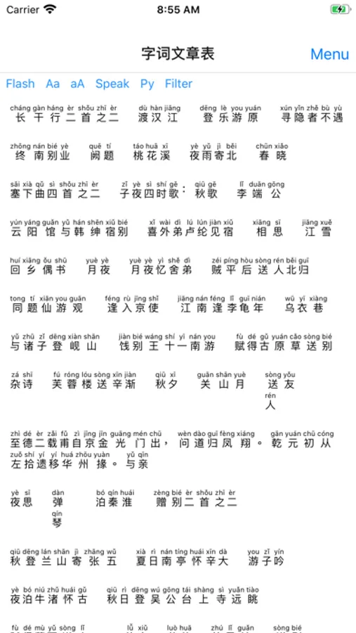 XueHanZi tries to help people learn Chinese faster and more efficiently by putting all the materials together. All the materials, and the user's status are in the user's finger tip. The user can easily check the stuff he has learned, and the stuff he has not. They can also easily adjust their course based on their progress.