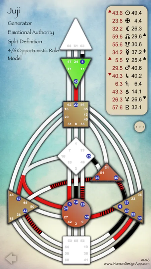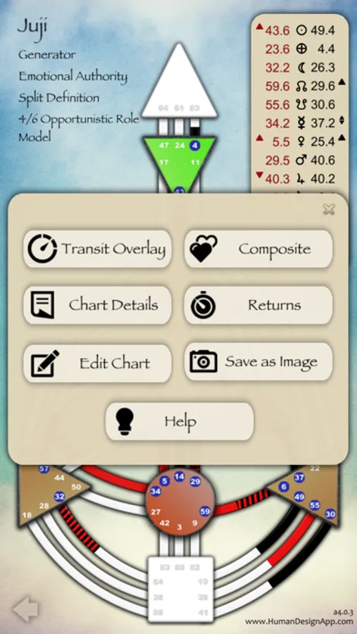 Human Design App is the original Human Design app for iPhone and iPad. Create natal charts, look at current transits, explore composite and return charts.