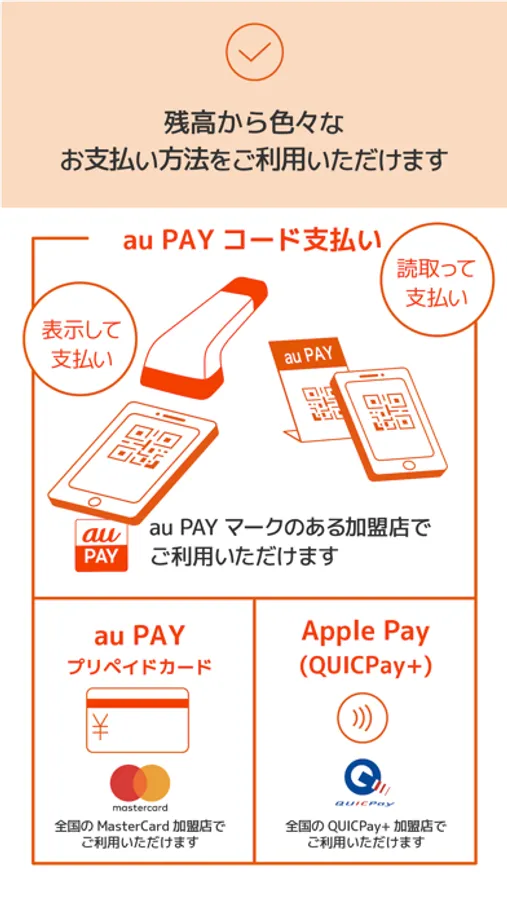 au PAY コード支払い、au PAY プリペイドカード、au PAY カードをより便利に使いこなすためのアプリです。
