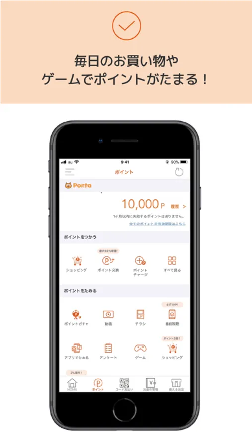 保有しているPontaポイント数、獲得利用履歴を確認できます。