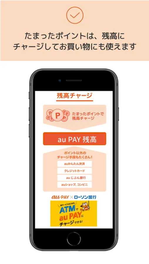 アプリからau PAY 残高へのスムーズなチャージ(入金)が可能です。