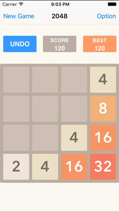 Swipe any direction to move all tiles. When two tiles with the same number touch, they merge into one.