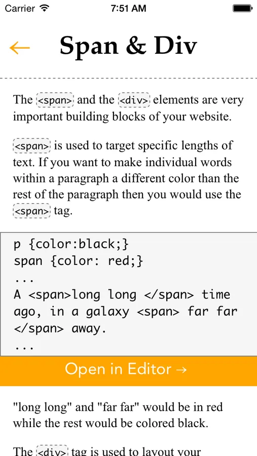 The app includes a sleek, intuitive HTML editor that provides an enjoyable way to learn and practice programming on the go.
