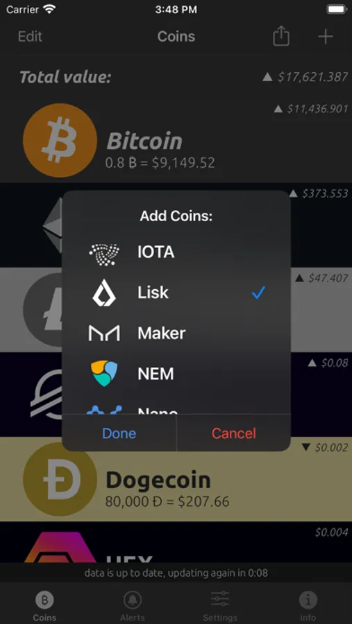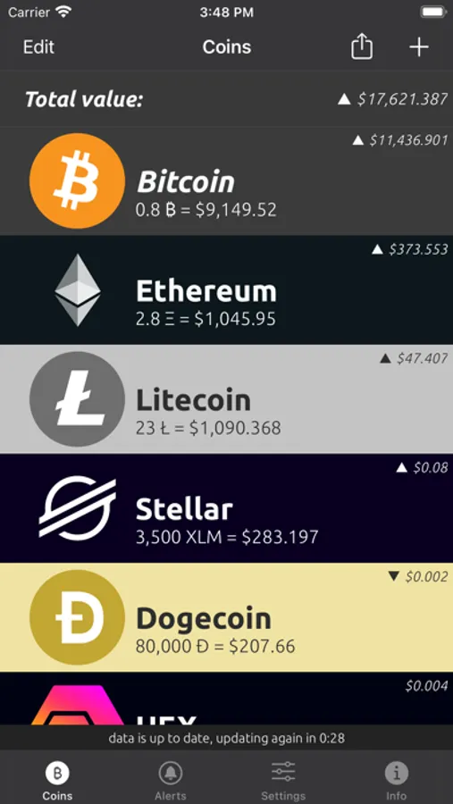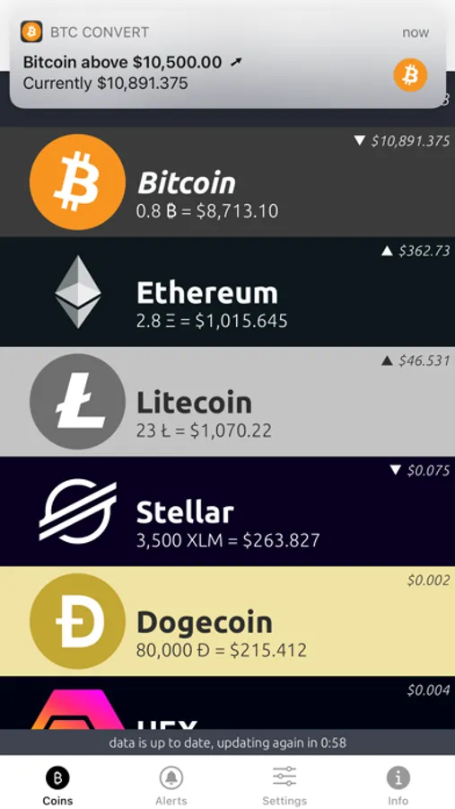 We know that most people like to diversify their portfolio, so we've added support for also checking fiat rates against the following popular altcoins: