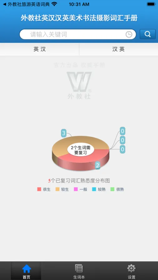 外教社官方权威正版发布,其他同名美术、书法与摄影词汇手册均为盗版。《外教社英汉汉英美术、书法与摄影词汇手册》是由上海外语教育出版社发行的词汇词典类软件,软件收录了美术、书法与摄影基本词汇(英汉、汉英双向收词14000余条),是美术、书法与摄影专业必备手册。本软件由海笛科技提供产品支持,具备手机上最便捷的查词功能(摄像头查词、语音查词等),还有清晰发音、生词收藏、生词辅助记忆等学习功能。选择高品质词典和词汇手册,学习更有保障!