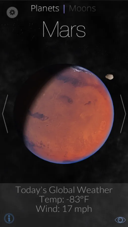 Now you can! Check out today's average temperature and wind speed on every planet in the solar system, as well as the most important moons and the Sun, all while viewing the solar system in stunning 3D the likes of which you have never seen before on your phone!