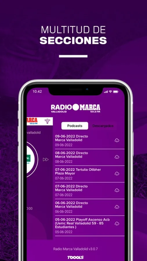 Esta aplicación te permite escuchar en directo, y en formato podcast, la programación local de Radio Marca Valladolid, además de las 24 horas de emisión de 'la radio del deporte' a nivel nacional. Puntualmente, podrás escuchar retransmisiones en directo en exclusiva en la APP, seguir eventos deportivos a través de comentarios e interactuar con Twitter y @MARCAvalladolid.