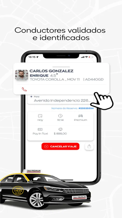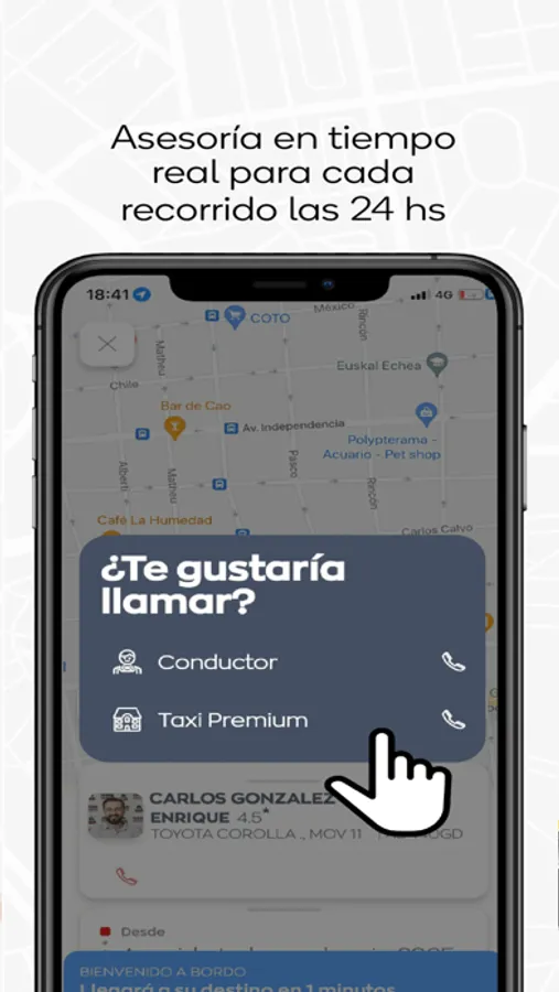 Recibí una notificación cuando el taxi llegó a tu puerta, evitá desencuentros y viajá a tu destino con total seguridad.