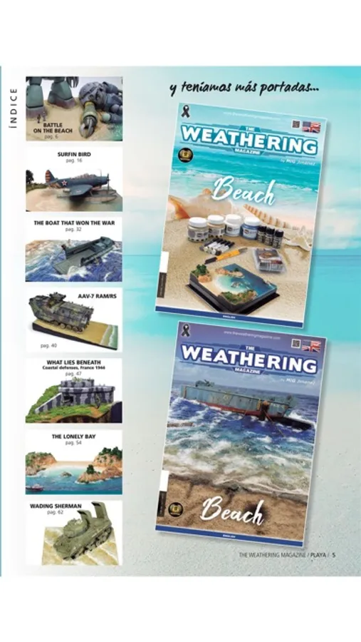 Cada número abordará en profundidad un tema específico, lo que nos ayudará a comprender en profundidad el proceso de Weathering.En la revista The Weathering Magazine, los mejores modelistas del mundo nos mostrarán y enseñarán las mejores y más avanzadas técnicas que necesitaremos para que nuestras maquetas alcancen el mayor realismo posible.
