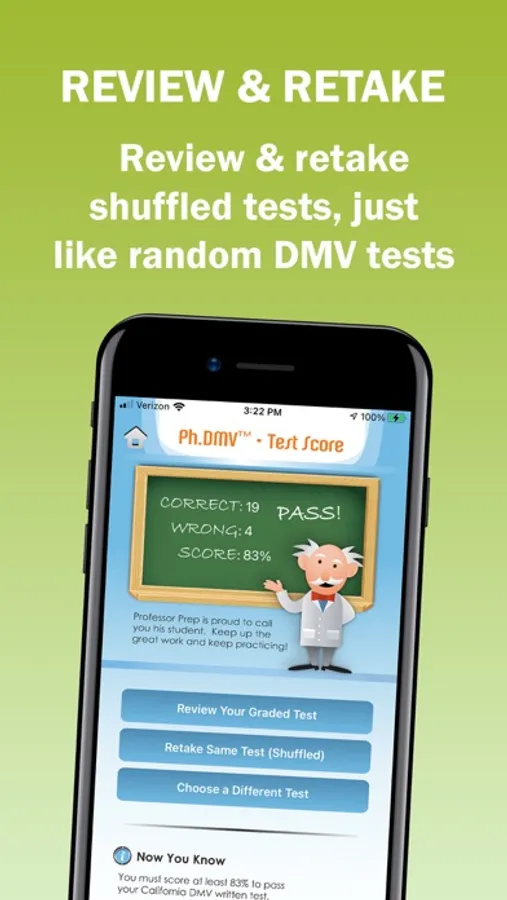 While the Ph.DMV app is geared specifically towards helping teens pass the California DMV permit exam, most of the questions are applicable for all 50 states' permit exams.