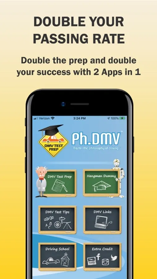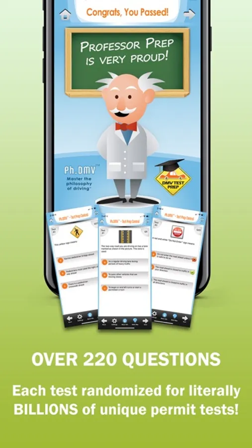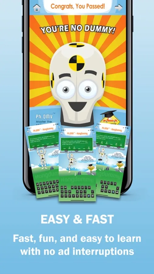 Pass your DMV permit test with ease! Now you can go to the DMV with confidence with the Ph.DMV Test Prep app. Loaded with over 200 DMV test questions and over 150 FREE games of Hangdummy driver's ed trivia. That’s over 350 ways to practice, and over half of the questions are provided for FREE... and no ads, ever!